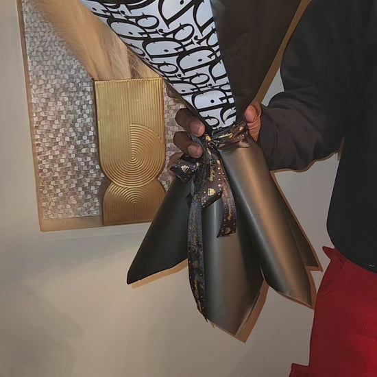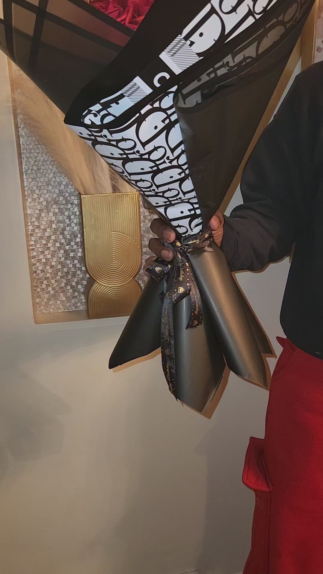 PLEASE PUT YOUR CHOICE OF DESIGN IN THE NOTES AT CHECKOUT 1 DESIGN ONLY, Example letter, number or heart Make your gift truly one of a kind with our Custom Rose Bouquet. This luxury handcrafted arrangement features premium red roses accented with glitter roses and finished with a custom design of your choice.